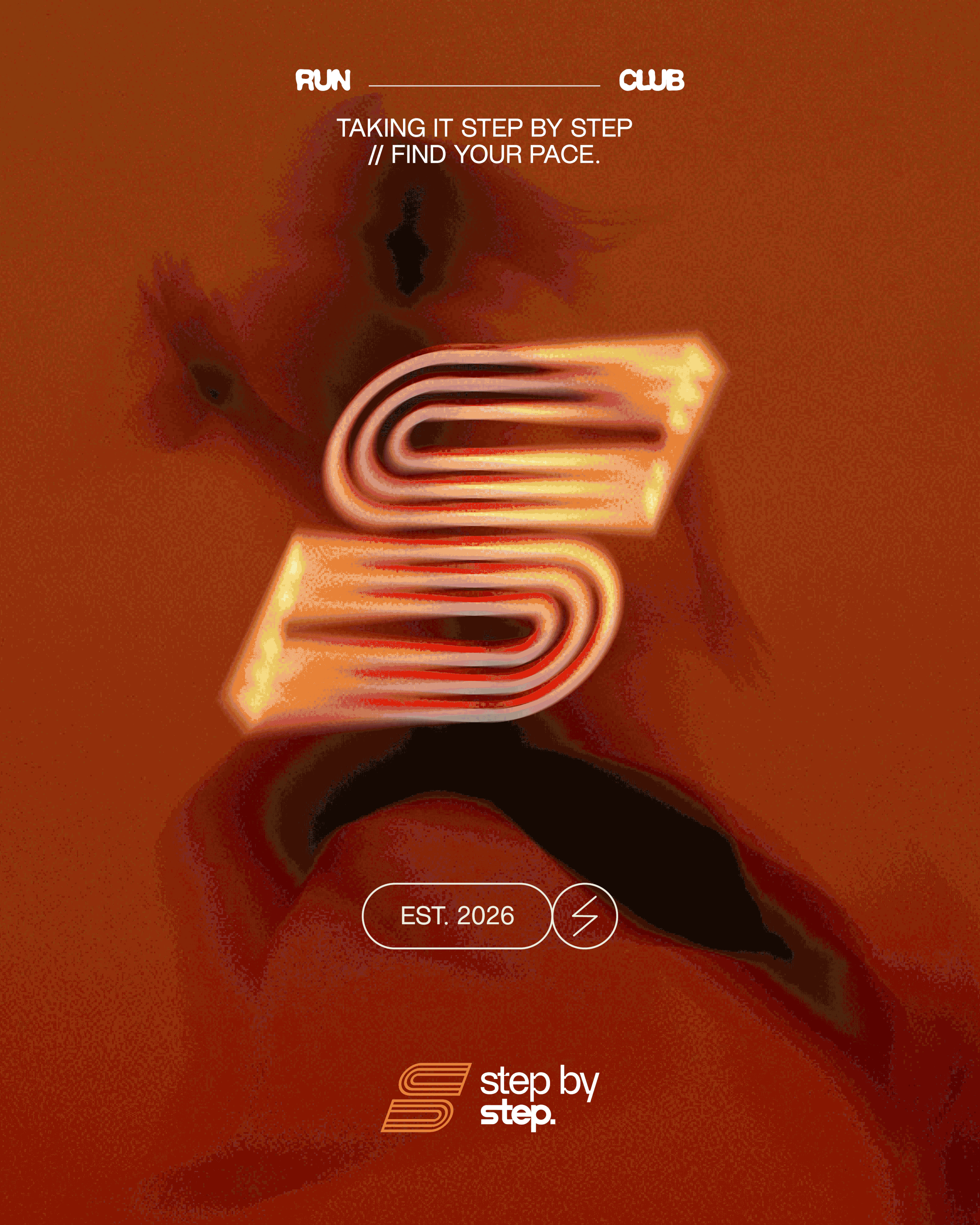 Step By Step is a run club built around inclusivity and personal pace, removing the pressure often associated with traditional fitness communities. With a bright, modern, and tech-driven identity, the brand captures movement, progress, and accessibility - encouraging everyone to run on their own terms.